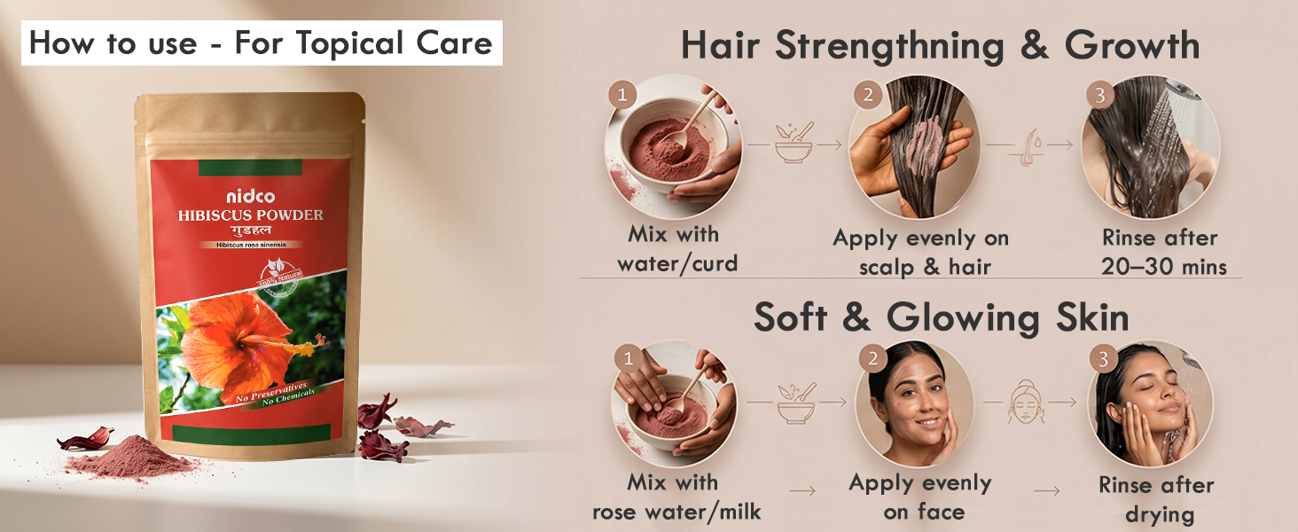 Multipurpose Use for Hair, Skin & Tea: This versatile powder can be used as a beneficial face pack, hair mask, or brewed as hibiscus tea. It’s also perfect for adding to smoothies, natural remedies, or DIY beauty treatments.
