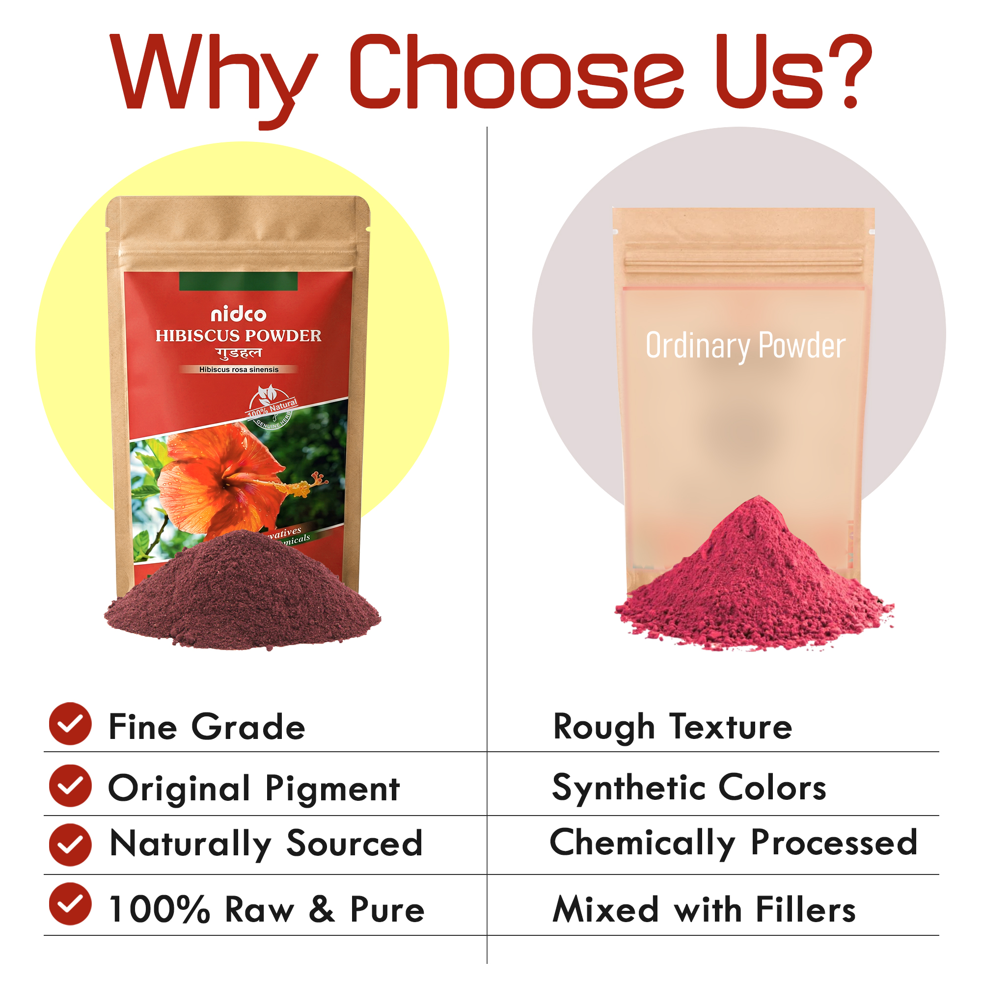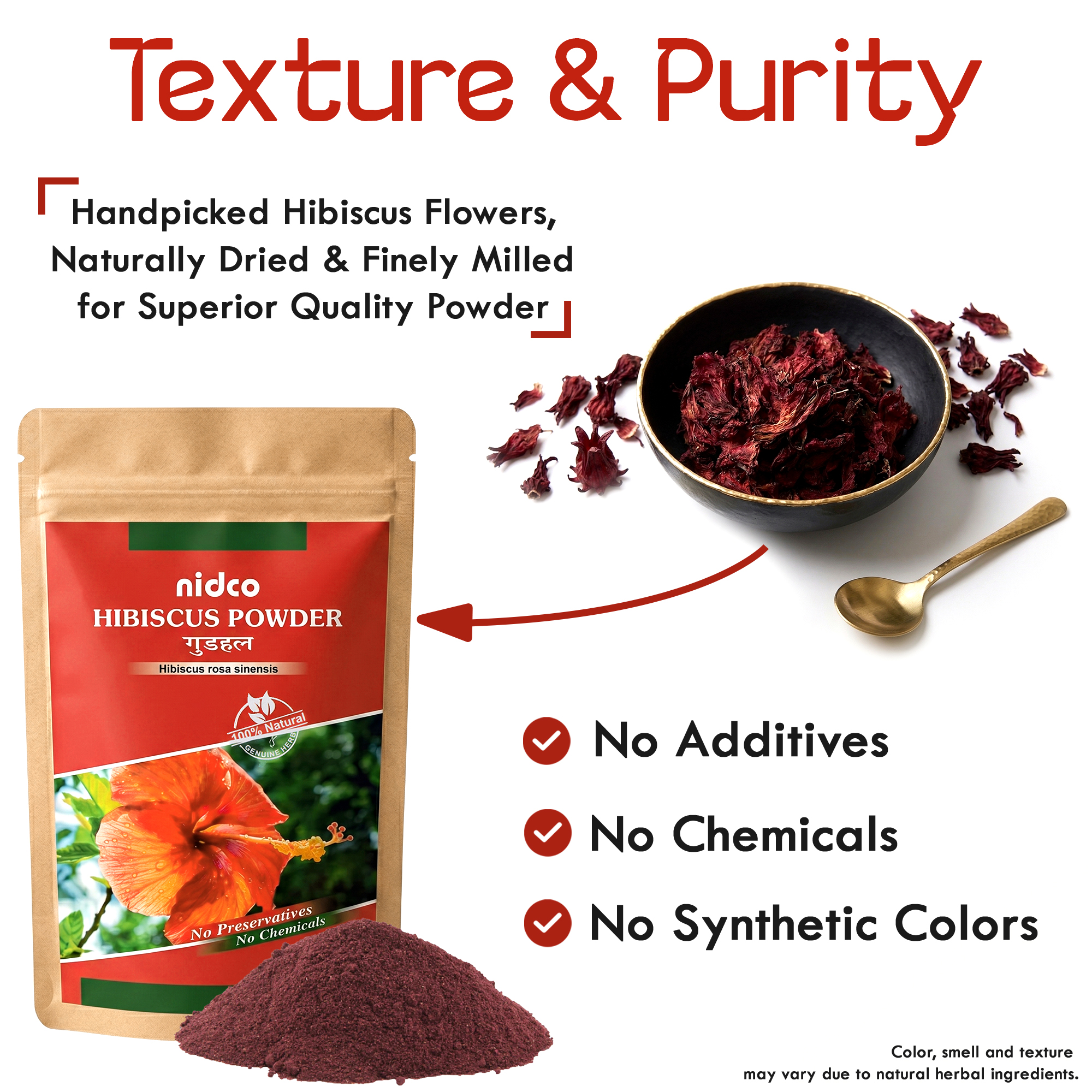 Pure & Natural: Made from 100% pure Hibiscus Flowers with no additives, fillers, or chemicals. Comes in a convenient 50 Gms resealable pack to maintain freshness.