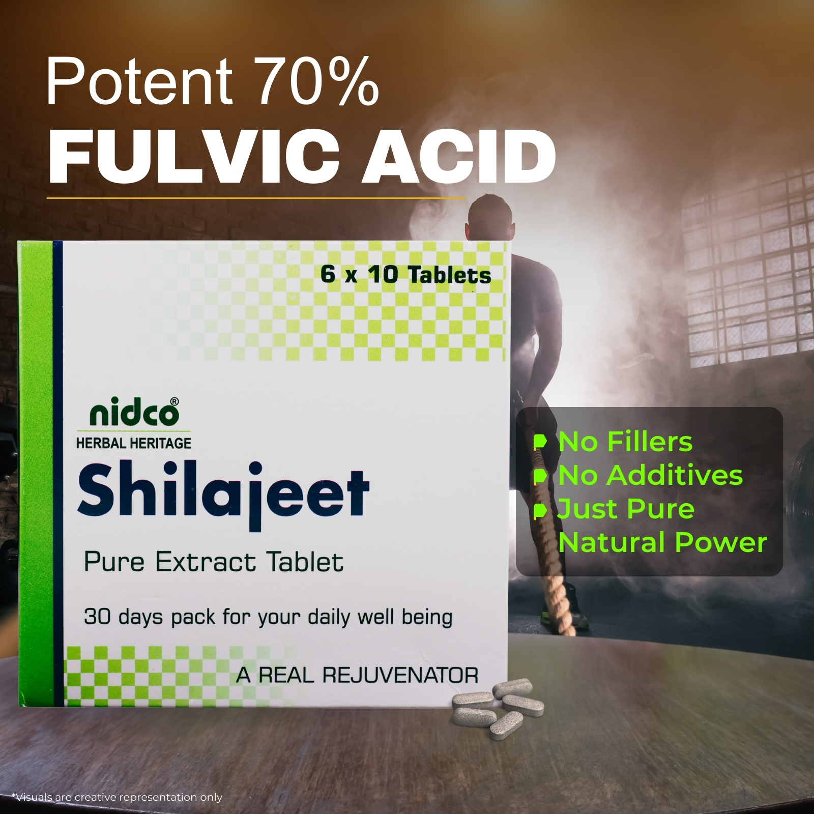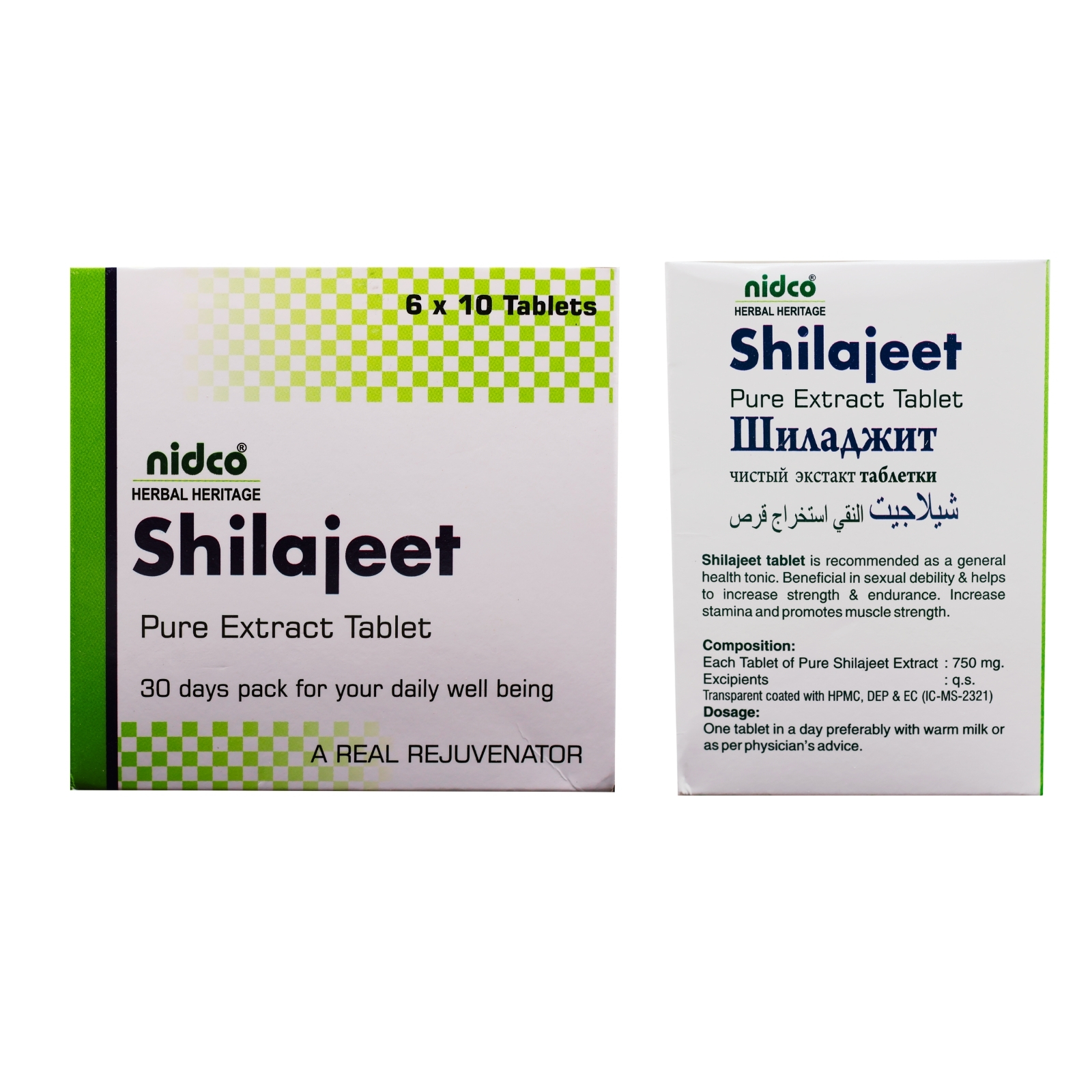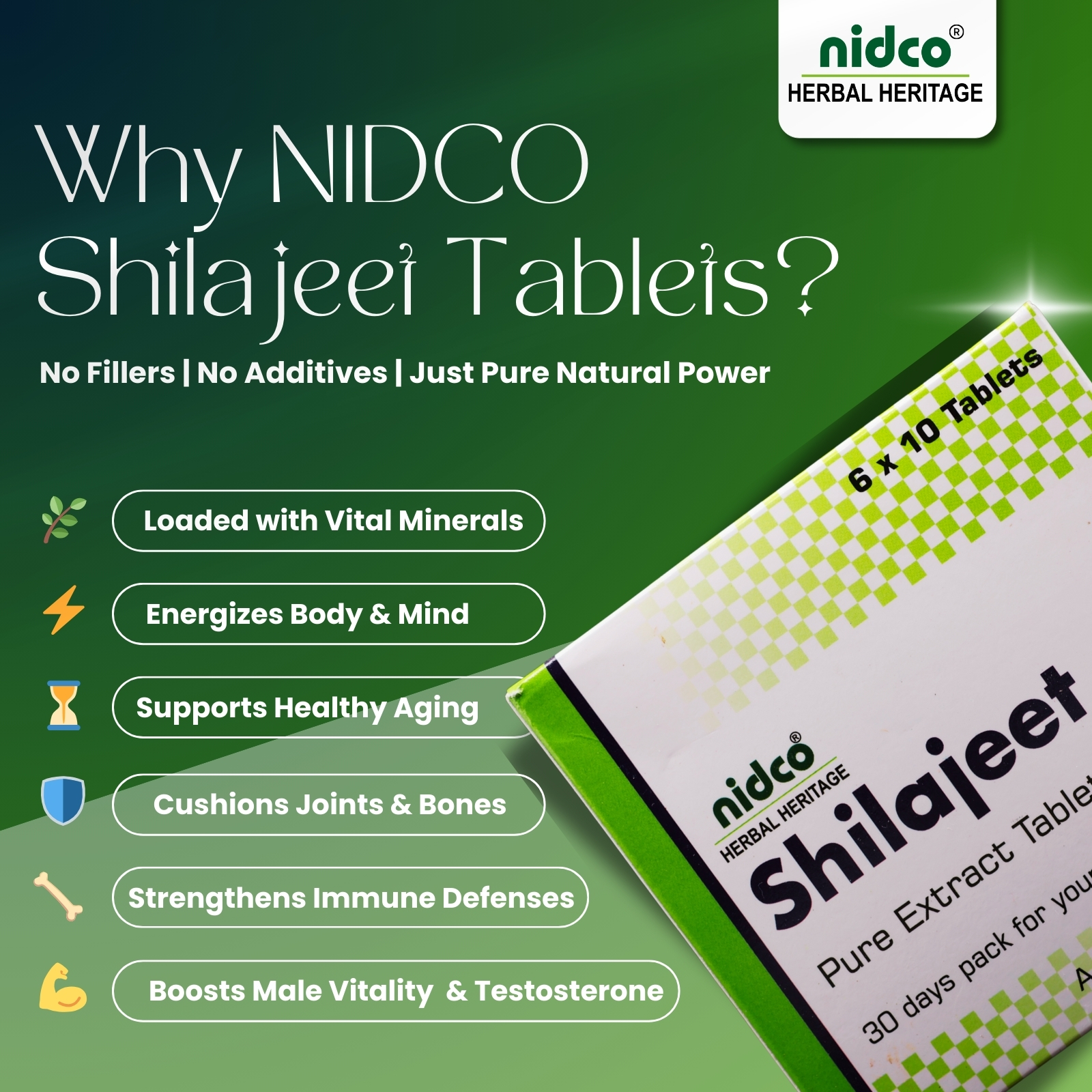 Experience the convenience and concentrated power of Nidco’s Shilajit in tablet form. These tablets are made from high-quality, natural Shilajit with no added chemicals, preservatives, or fillers, making them a safe and effective vitality supplement for both men and women.