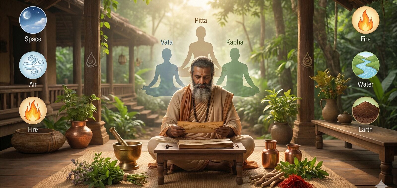 - Vata (Air + Space): Controls movement, circulation, and the nervous system.